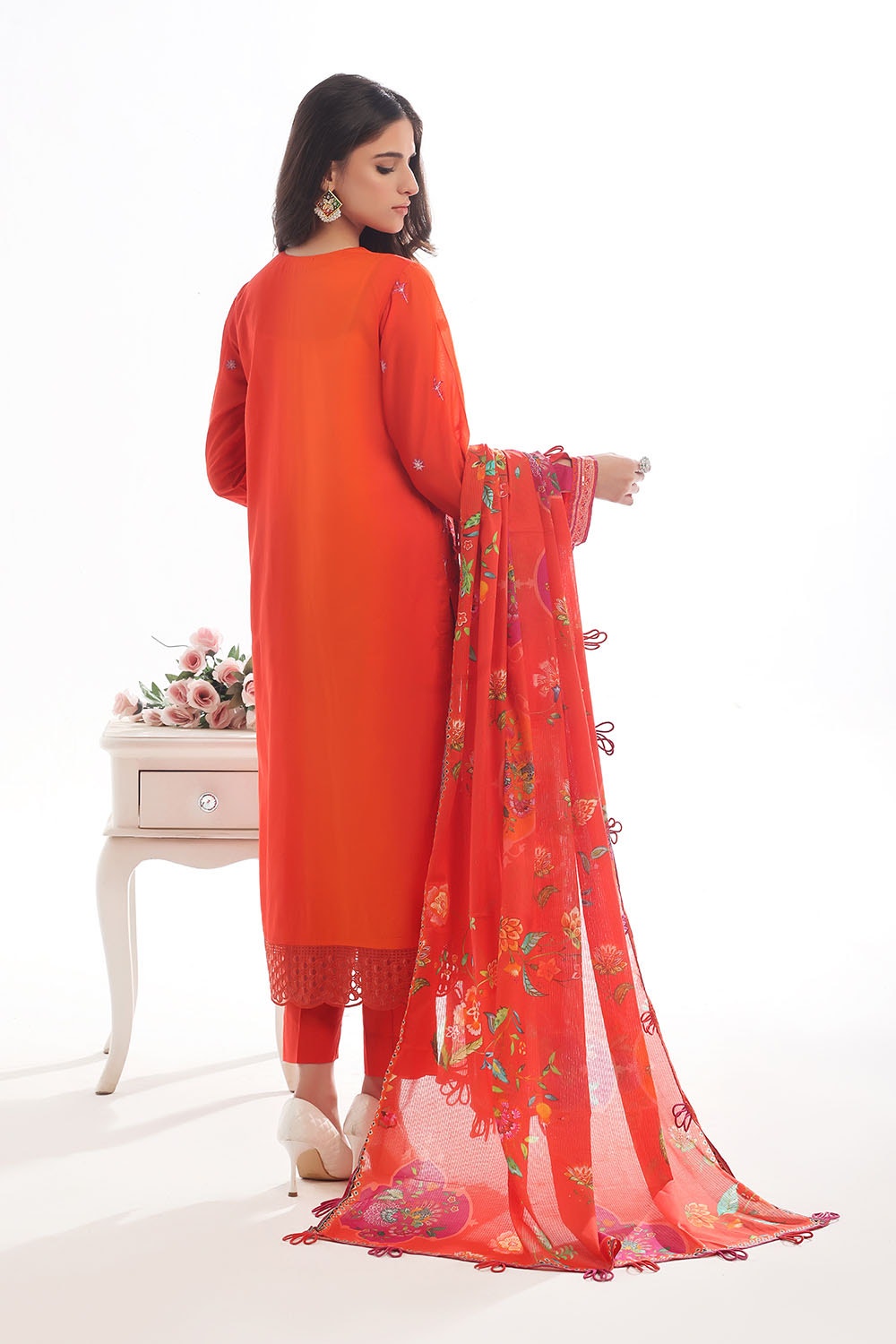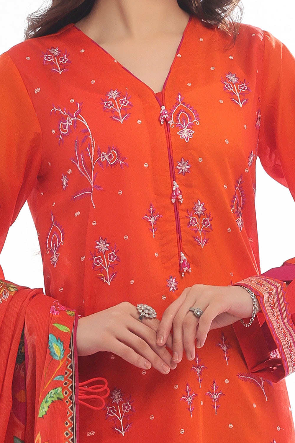 • Embroidered Printed Lawn Shirt Front & Sleeves. Embroidered Borders for Front & Back on Organza. Printed Lawn Back – 1.75 Meters