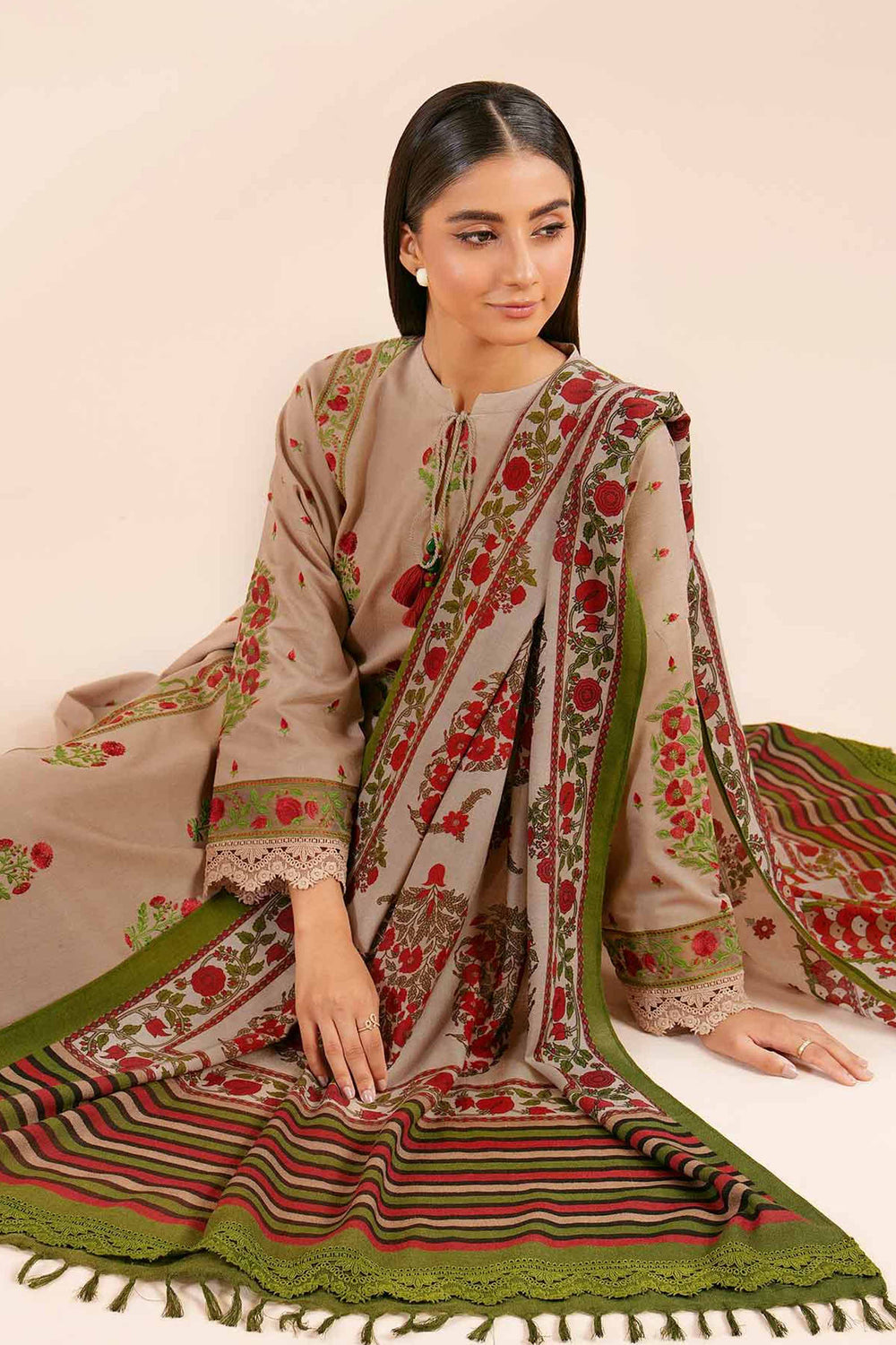 Mughal Style Shirt with Shawl and Trousers