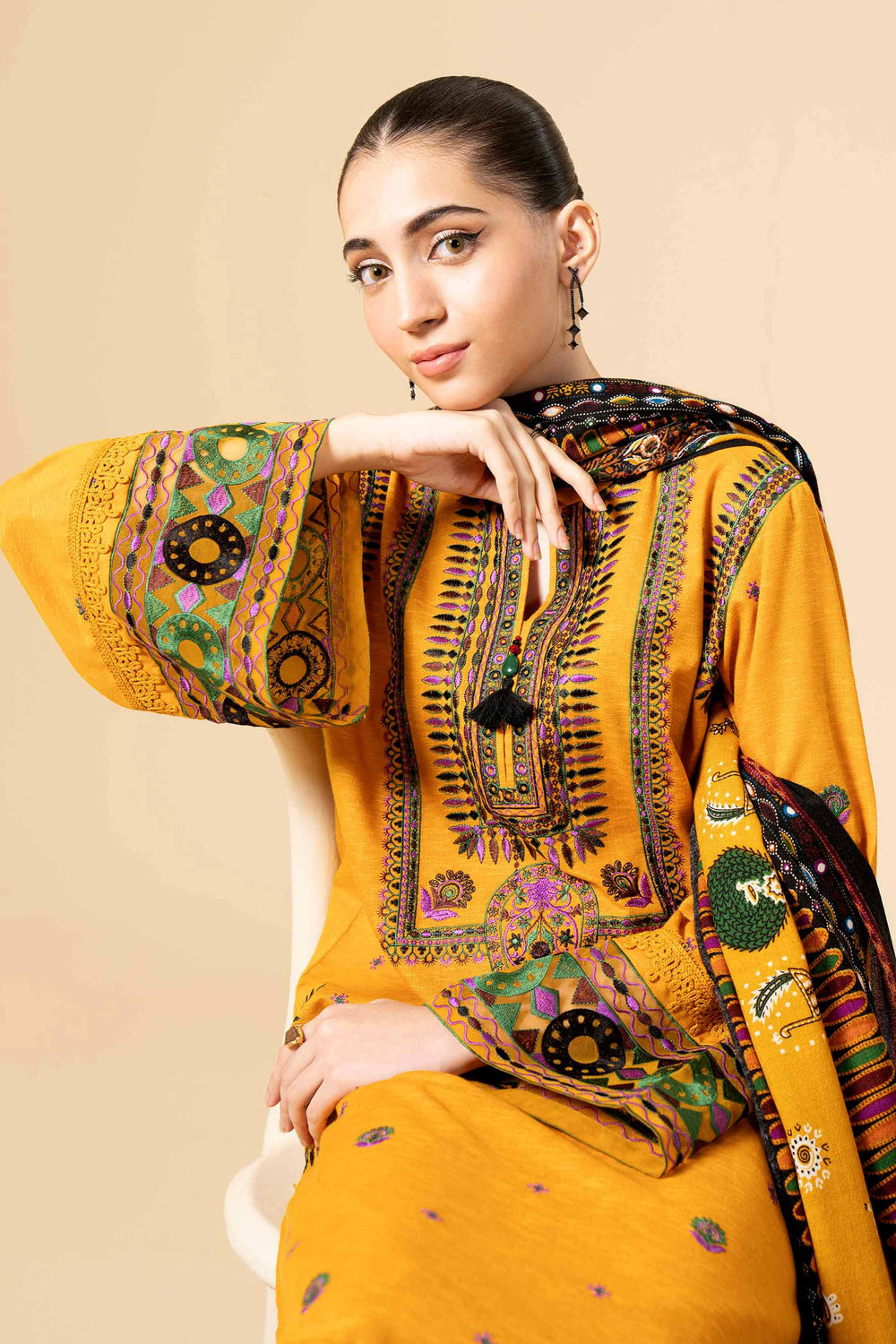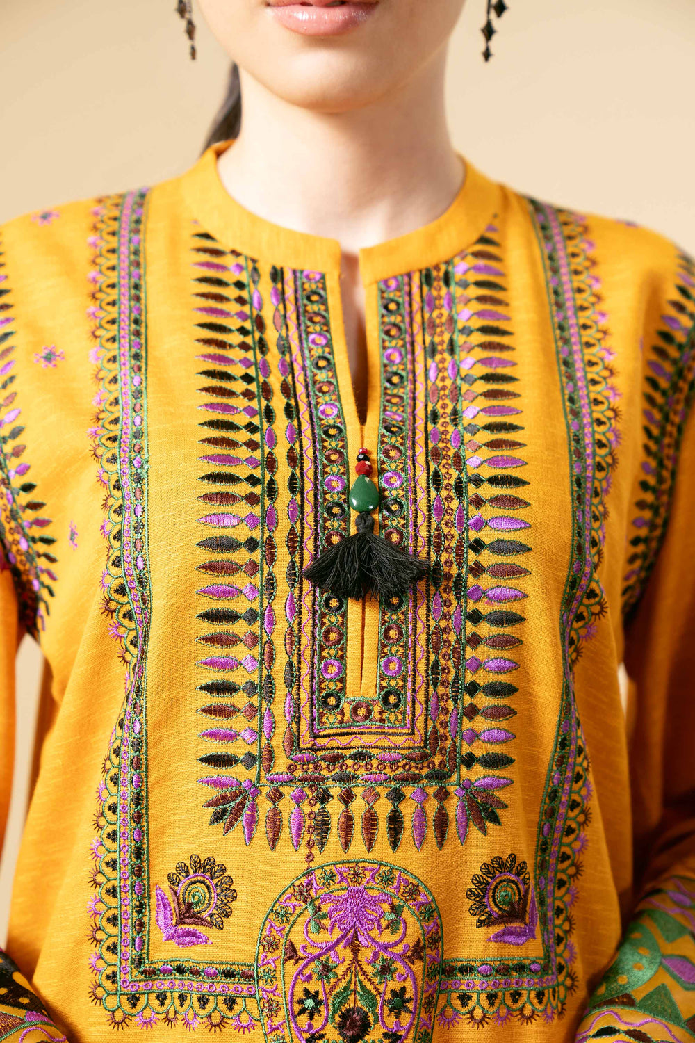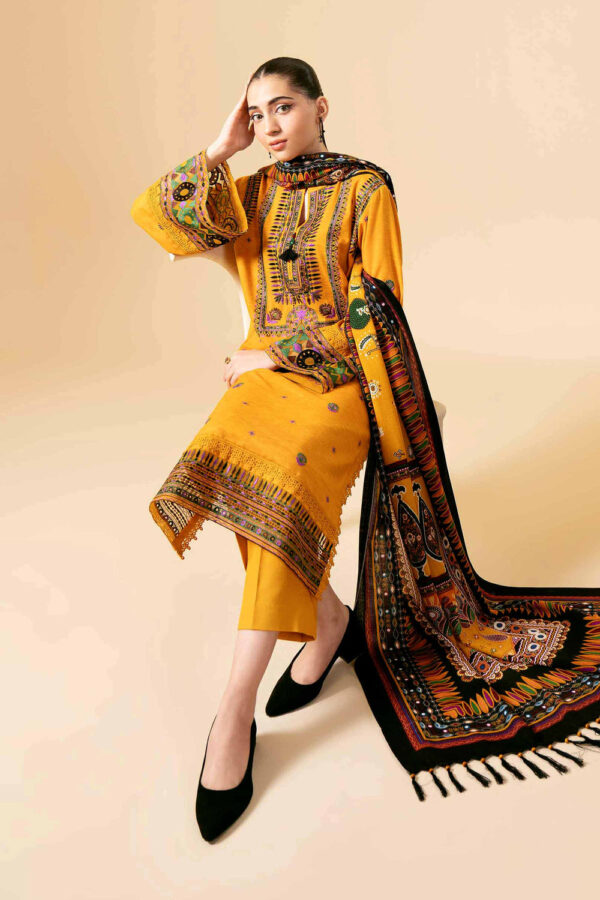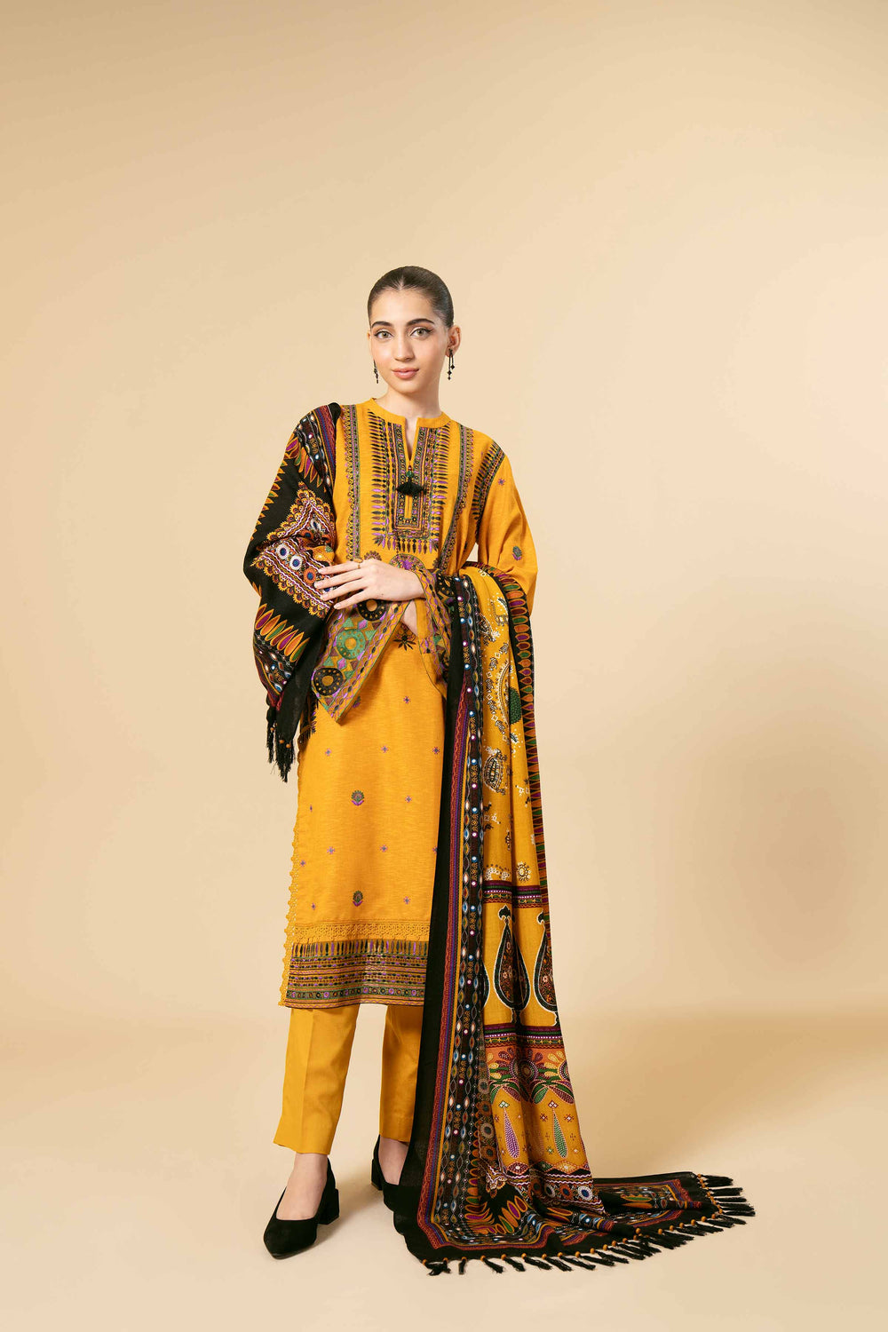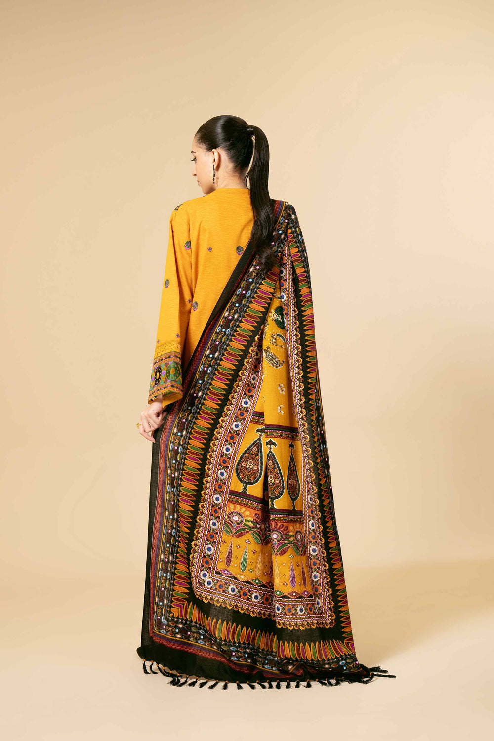 Embroidered Motifs Style Shirt with Shawl and Trousers