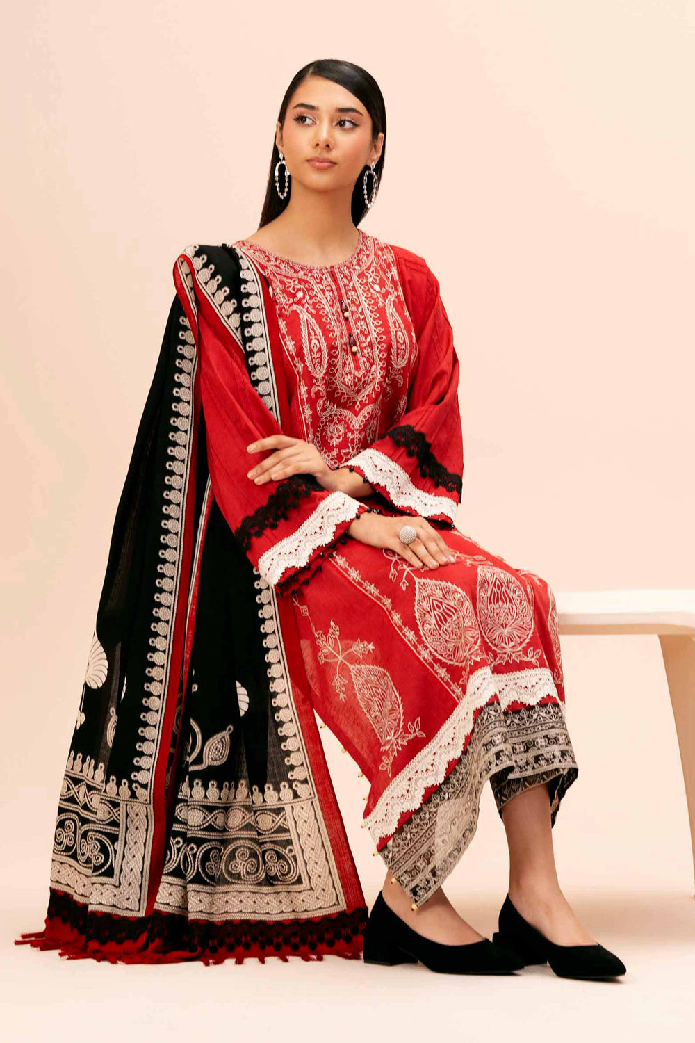 Dorri Patterns With Spade Motifs Style Shirt with Shawl and Trousers