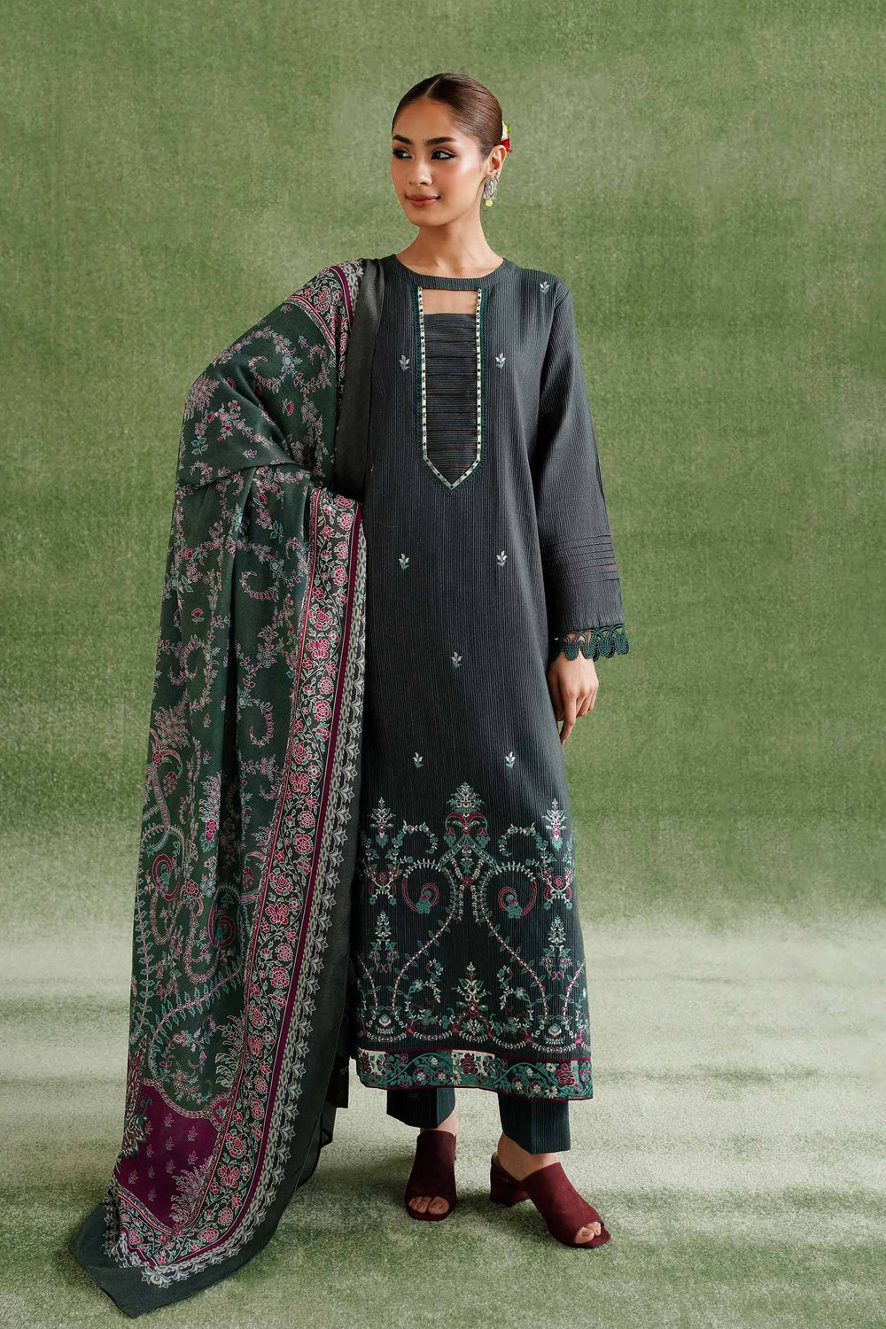 Mughal Floral Patterns Shirt with Shawl and Trousers