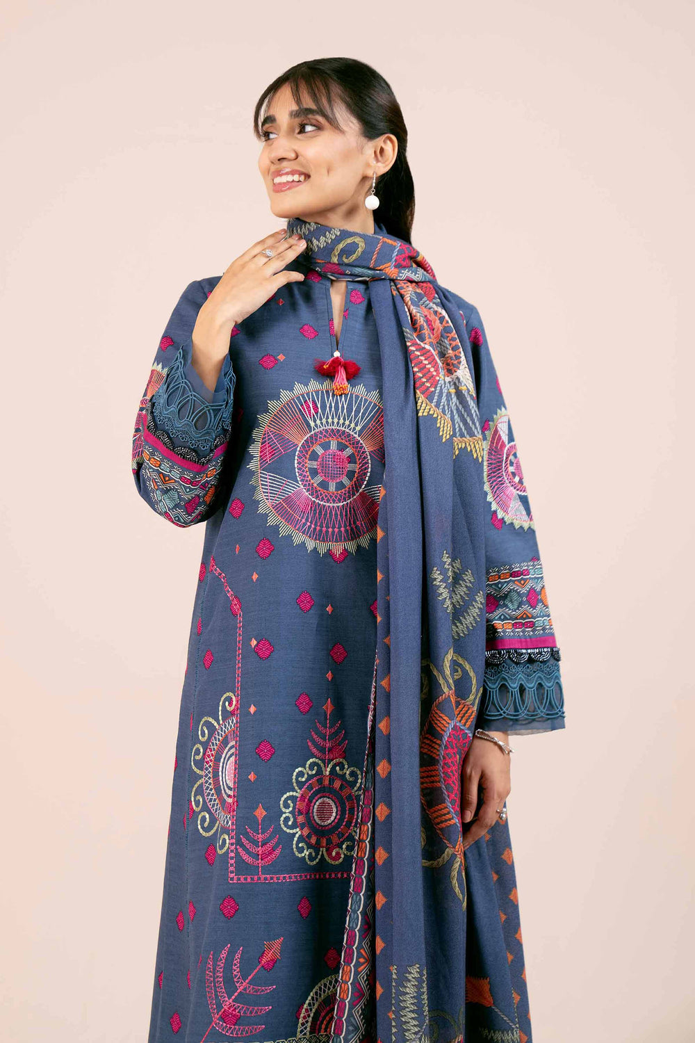 Embroidered Style Patterns Shirt with Shawl and Trousers